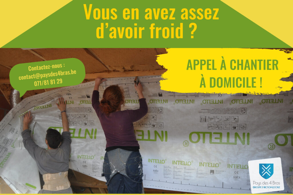 Le GAL Pays des 4 Bras, en collaboration avec l’asbl Format 360°, organisera en avril/Mai 2026 une formation « d’Isolation de toiture » sur chantier participatif à destination des particuliers.